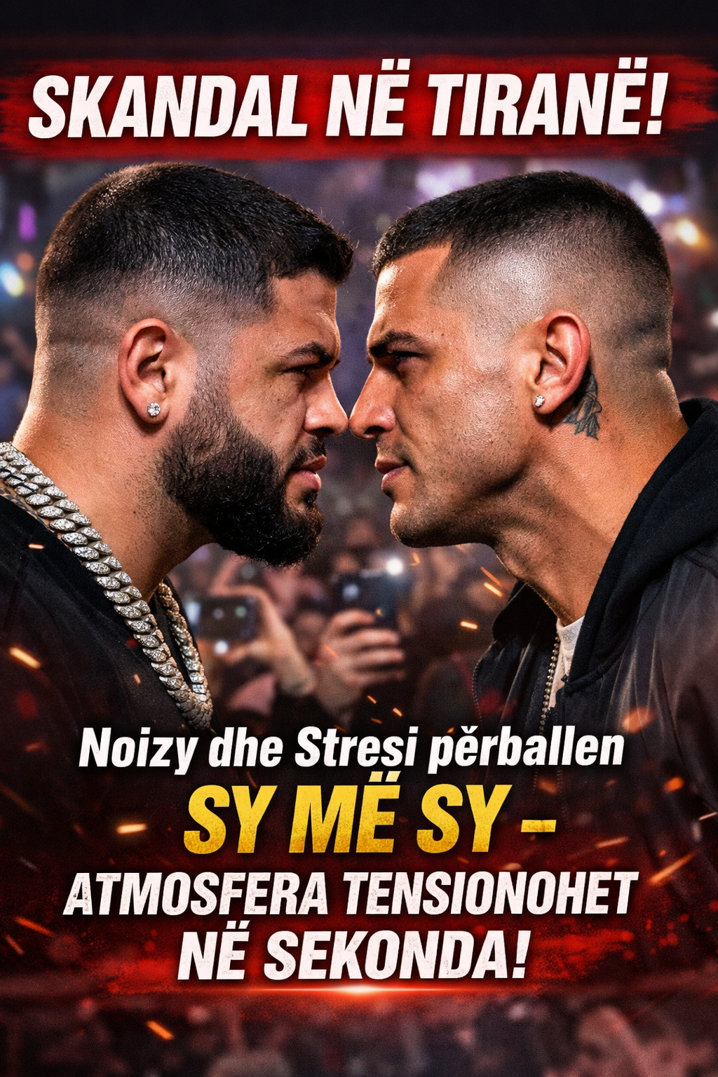 Mbrëmja që duhej të ishte festive u kthye në momentin më të komentuar të javës. Noizy dhe Stresi u panë në të njëjtin event në Tiranë dhe sipas të pranishmëve, një shkëmbim fjalësh mes tyre ngriti tensionin në sallë. Dëshmitarët thonë se situata u përshkallëzua për disa minuta para se të ndërhynin organizatorët.