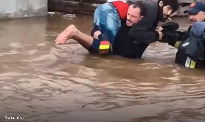 Ndodh edhe kjo. Ata po e shpëtojnë nga përmbytja, ai nuk e heq cigaren nga goja.