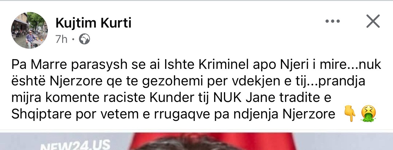 “Pa marrë parasysh se ai ishte kriminel apo njeri i mirë, nuk është njerëzore që të gëzohemi për vdekjen e tij. Prandaj, mijëra komente raciste kundër tij nuk janë traditë e shqiptarëve, por vetëm e rrugaçëve pa ndjenja njerëzore,” ka shkruar Kurti në reagimin e tij.