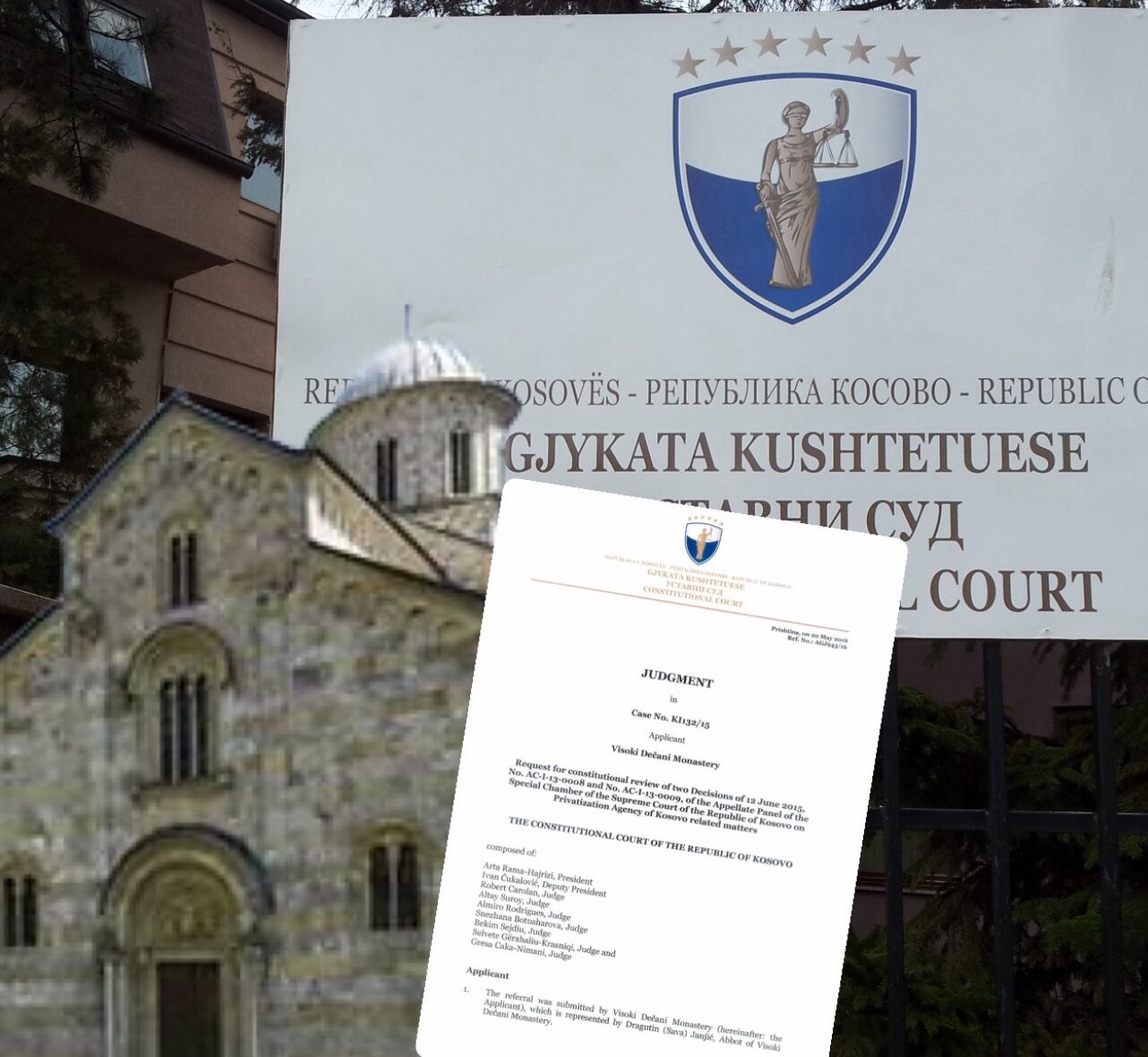 Në maj të vitit 2016, Gjykata Kushtetuese e Kosovës mori vendim përfundimtar që 24 hektarë tokë rreth Manastirit të Deçanit i takojnë Manastirit, duke konfirmuar edhe njëherë vendimin e mëparshëm të Gjykatës Supreme të Kosovës. Ky vendim i Kushtetueses vendosi përfundimisht çështjen e pronësisë, pas një procesi gjyqësor që zgjati mbi një dekadë, raporton GAZETA MINUTI.