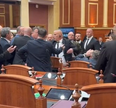 Kanë dalë pamjet nga salla e Kuvendit, kur deputeti i PD-së, Flamur Noka, ka hedhur një shishe uji në drejtim të kreut të grupit parlamentar të PS-së, Taulant Balla.